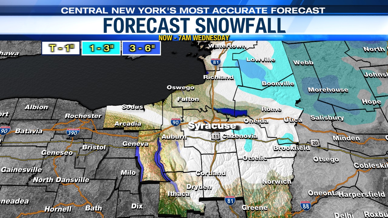 It appears at least a good 1 to 3 inches of snow falls Wednesday night for most across CNY with locally higher amounts possible, especially across the higher terrain.