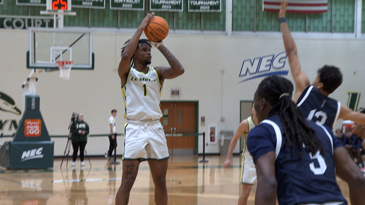 Former West Genesee star Luke Sutherland paced the ‘Phins attack, pouring in a game-high 22 points. Darrick Jones Jr., chipped in 17 points, and Ky Cleary added 13 points for the Dolphins. As a team, Le Moyne hit 13 threes.