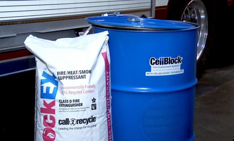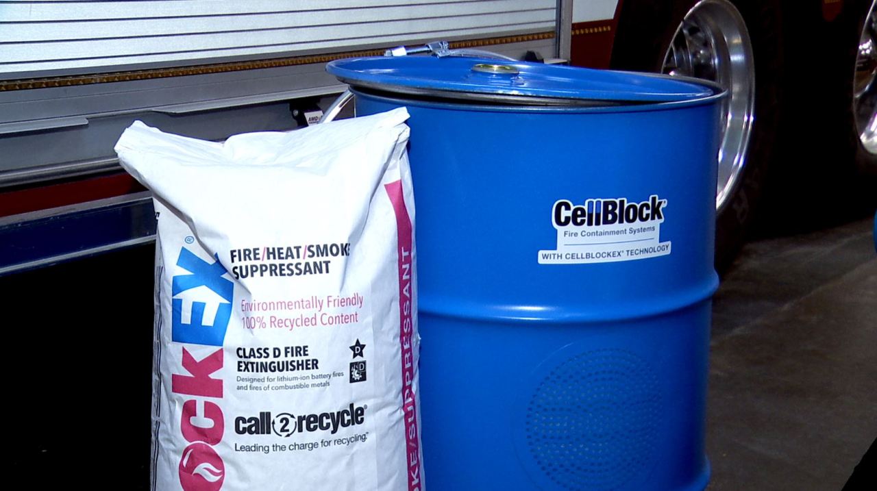 The Syracuse Fire Department has special equipment for the lithium batteries involved in a fire. A special metal container and powder is used to ensure that the battery doesn’t ignite again. The barrel’s bottom is first covered with the special powder that inhibits the chemical reaction that has taken place to stop generating heat that causes the thermal runaway.