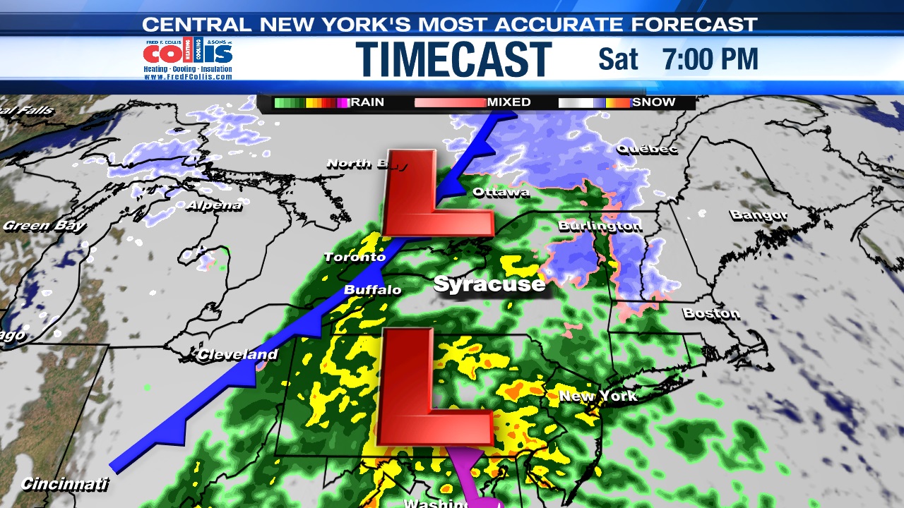 It will be a windy start to the weekend, with rain developing Saturday afternoon. Come late Saturday night into Sunday, we cool down enough for any rain to change some snow showers at first over the hills and then for the rest of CNY during the day Sunday.