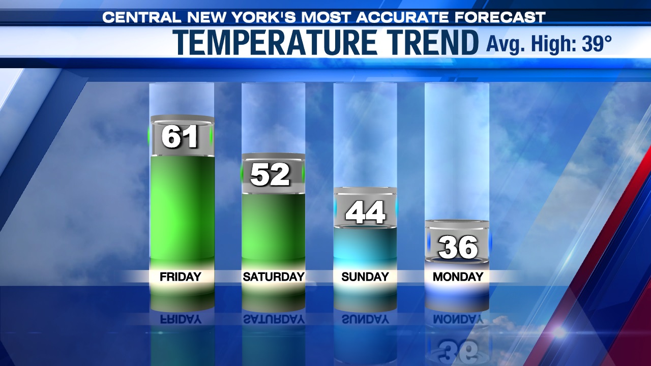 High temperatures over the weekend go from the low 50s Saturday to low 40s to start Sunday. However, temperatures Sunday are likely to fall into the low to mid 30s during the day with gusty winds accentuating the chill. Stay tuned for updates on the changes that are ahead for us.