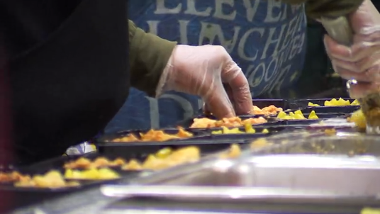 “The first meals we work on in the morning are the cold meals. Sandwiches, salads with side dishes,” he said. “Later on in the morning, we work on the hot meals. We have turkey, different pastas.”