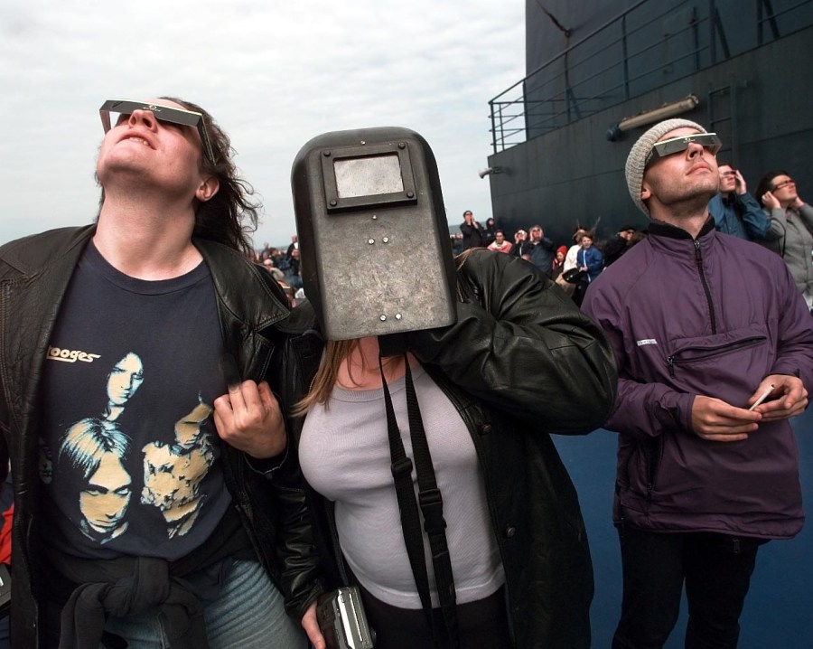 According to NASA, “regular sunglasses, no matter how dark, are not safe for viewing the Sun.” Instead, you’ll want to find special eclipse glasses. These are at least 1,000 times darker than the darkest sunglasses you can find, Scientific American reports.
