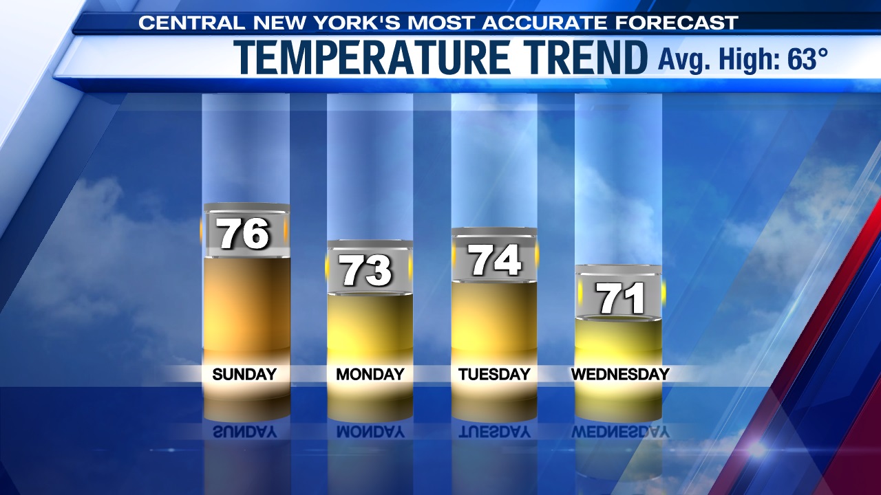 SYRACUSE, NY (WSYR-TV) – We stay warmer than average into the start of the new week, but do we need to keep the umbrellas handy, and any shot of 80-degree temperatures first part of week?? Details are below…