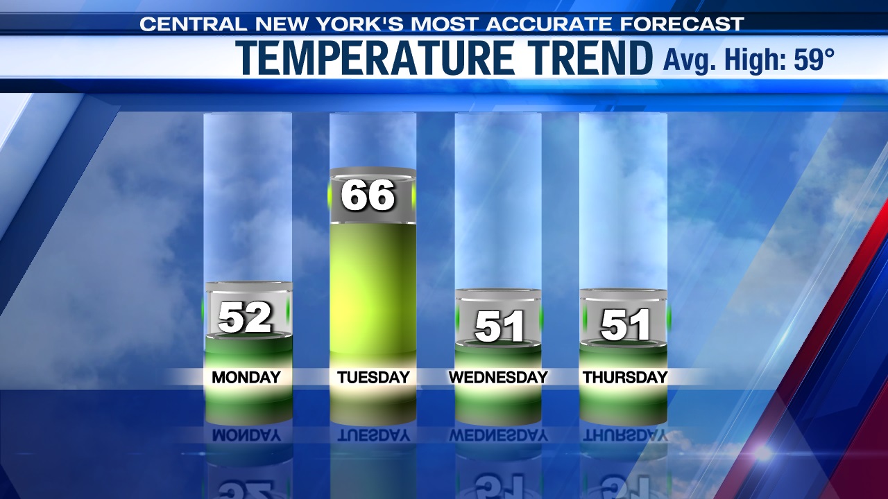 SYRACUSE, NY (WSYR-TV) – Cool and quiet tonight into Monday, but will we see more in the way of sunshine to start the week compared to Sunday? Find out below…
