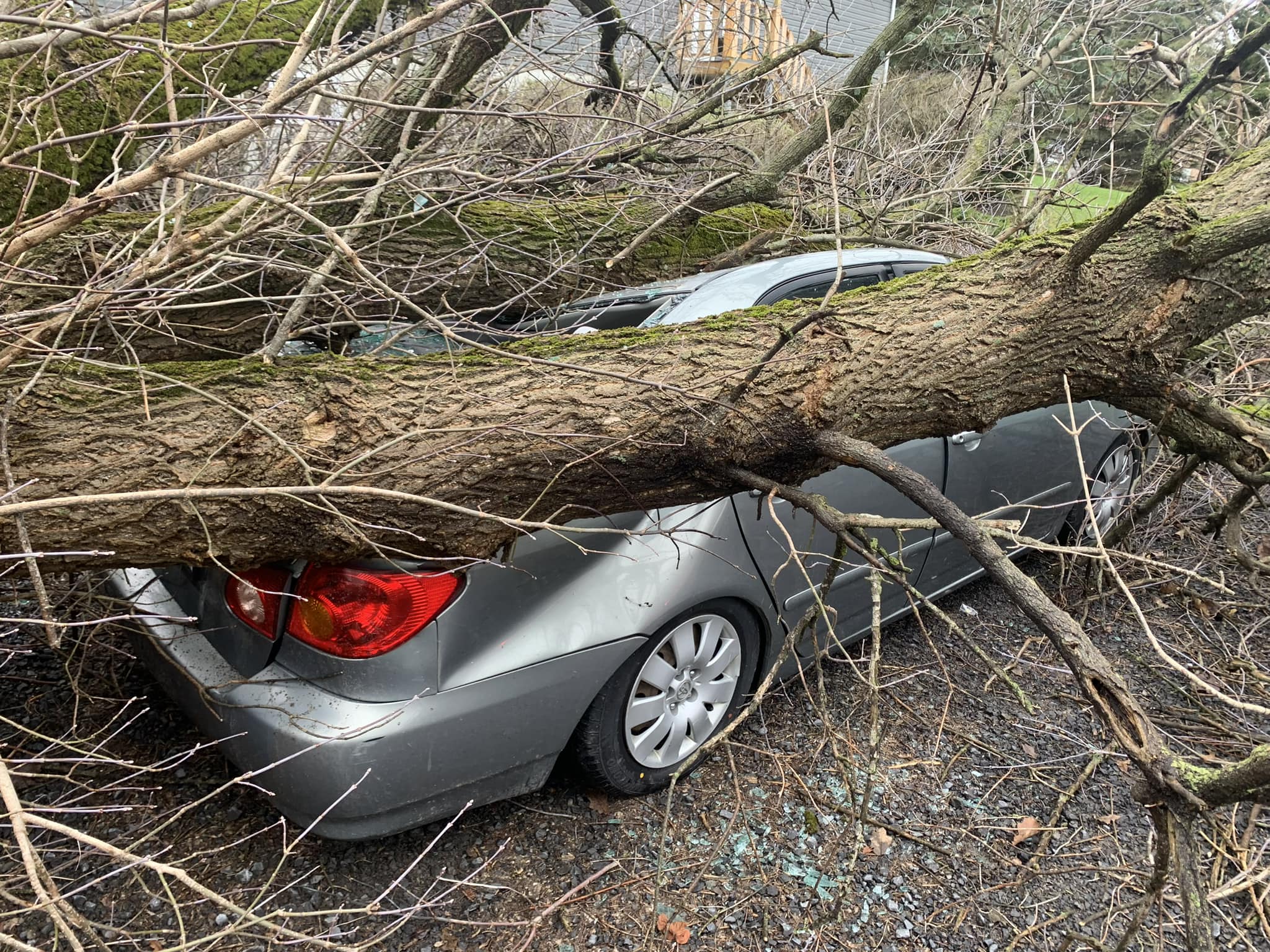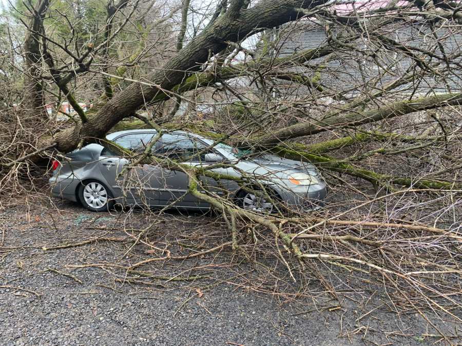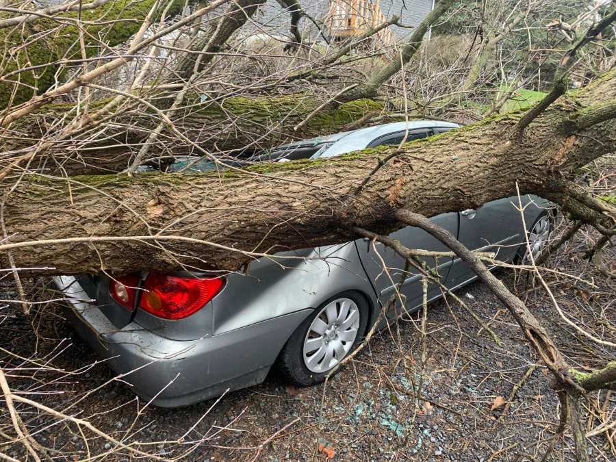 Branches had blocked roads and trees had toppled onto cars in Tompkins County.