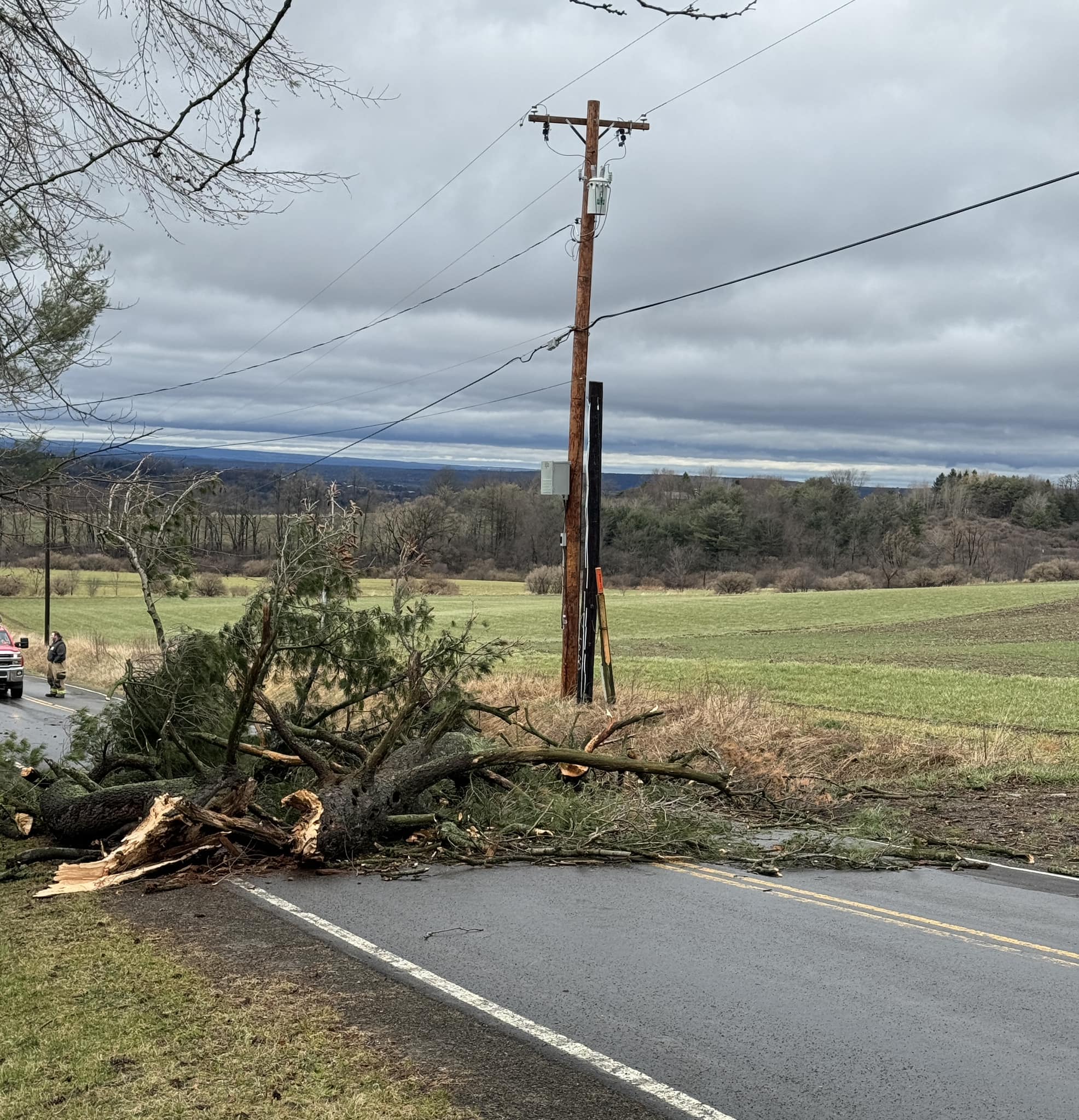 “Numerous trees and wires were down throughout the Town of Dryden and Tompkins County. Use caution and treat all wires as live until utility crews take care of them,” said Neptune Hose Co #1 of Dryden Inc. & Dryden Ambulance Inc. on April 3.