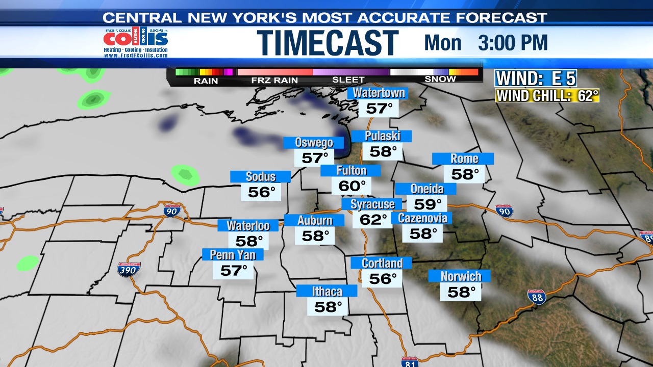 Highs Monday will be within a few degrees of 60, so pretty comfortable for early April in CNY.