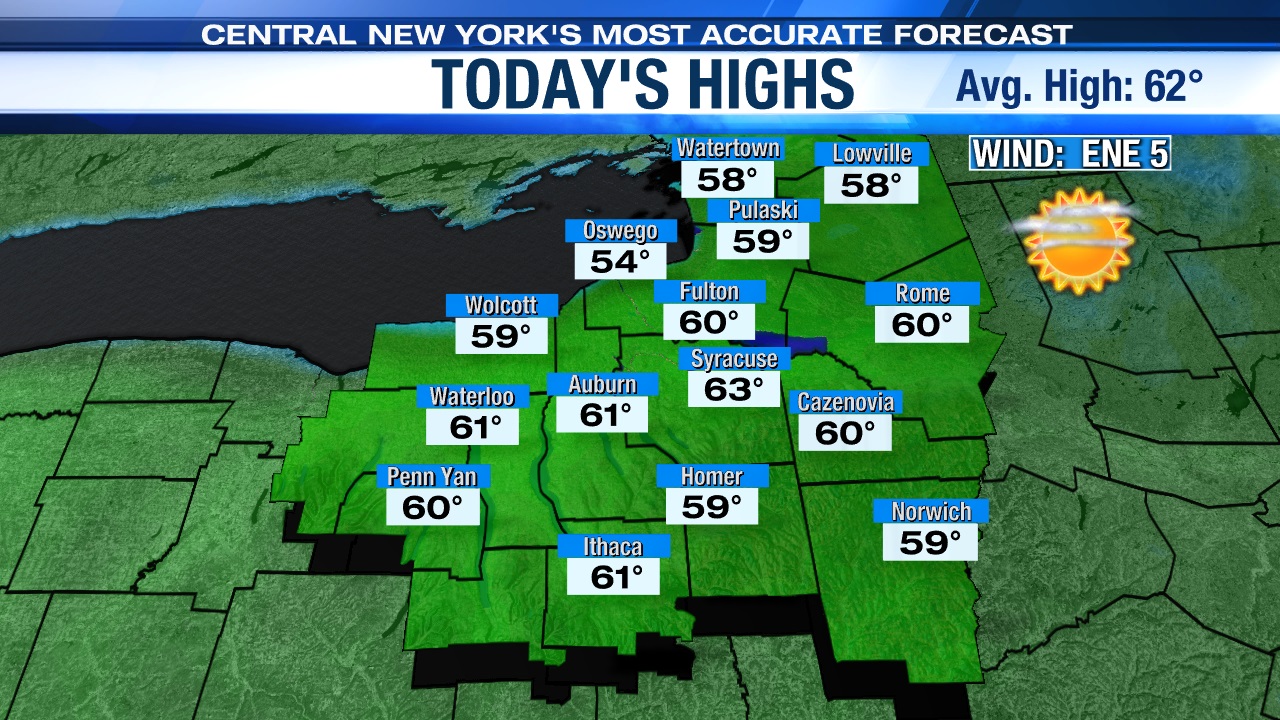 High pressure remains in control and close to central New York on Friday, so look for another bright and sunny day.