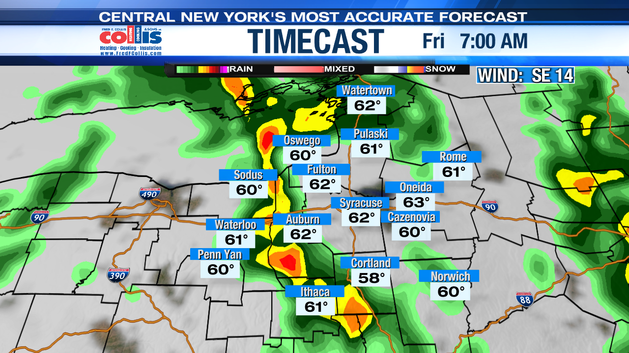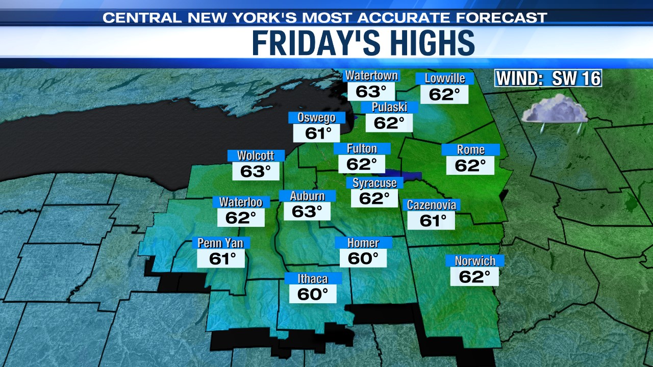 SYRACUSE, NY (WSYR-TV) – Our weather is staying rather dreary, windy, and mild… for now. The showers stick around overnight but the temperatures eventually take a tumble by the weekend. Details are below…