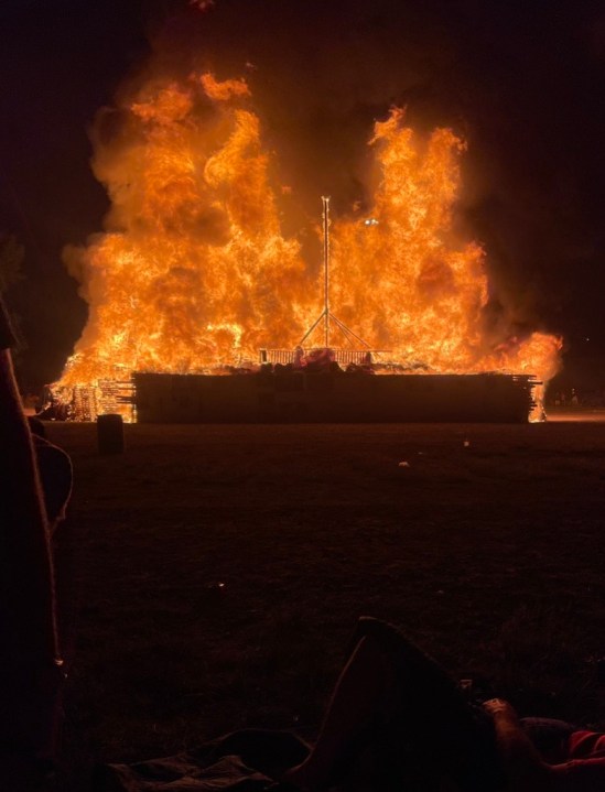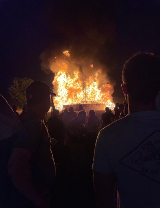 At dusk, on Sunday, May 26, you can watch as the pile of wood and worn flags in the Brown Parking Lot at the New York State Fairgrounds is lit.