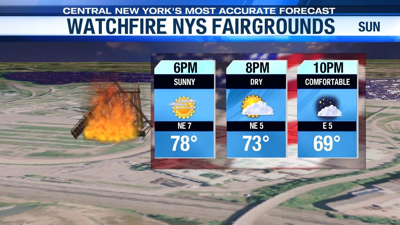 High temperatures once again are above average, topping out close to 80 degrees! Perfect for just about any outdoor activities, including the Watchfire at the Fairgrounds Sunday evening.