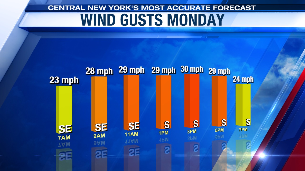 Highs on Monday will be around 80 once again, and it will feel more humid as dew points climb back into the 60s. We also expect the wind to pick up with occasional gusts up to around 30 miles per hour.