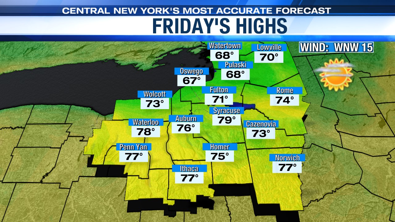 SYRACUSE, NY (WSYR-TV) – It was a picture perfect Thursday but can we keep that kind of weather into the holiday weekend? Details are below…