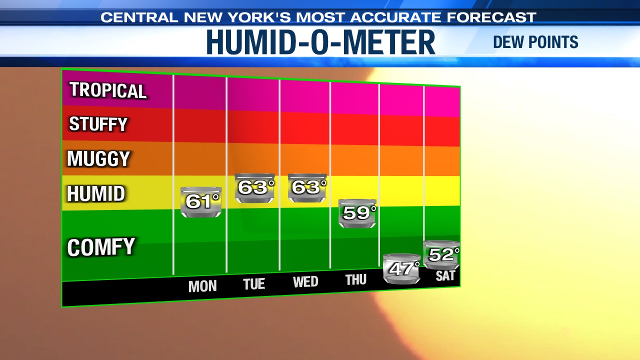 It will be an early taste of summer weather for Central New York. Check out the rising dew points through midweek below too.