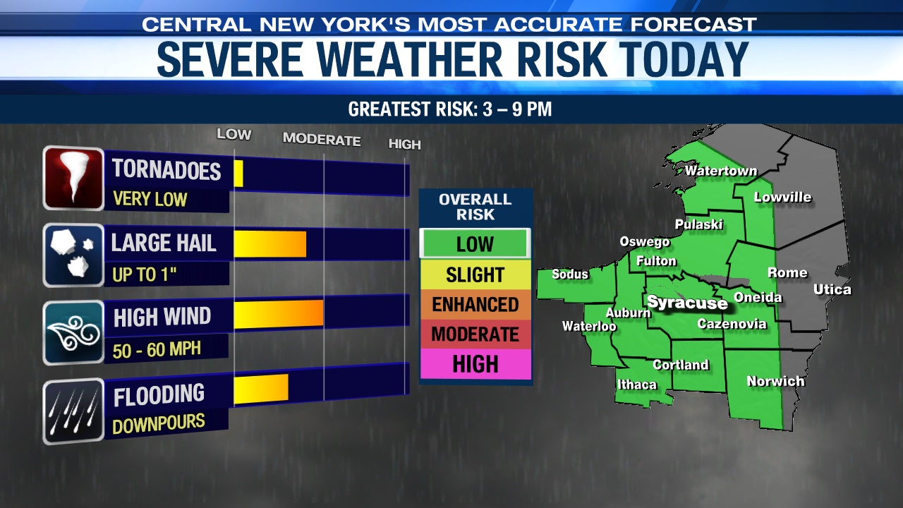 While we do have some showers and storms in the forecast for Saturday, they likely will not arrive until later in the day after 2 or 3 p.m. They should sweep east of Central New York by close to sunset.