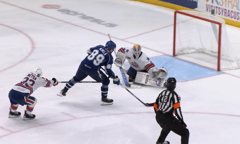SYRACUSE, N.Y. (WSYR-TV) — The Syracuse Crunch surpassed the Rochester Americans, 2-1, in double overtime tonight at the Upstate Medical University Arena to take a 2-1 lead in the best-of-five North Division Semifinals series.