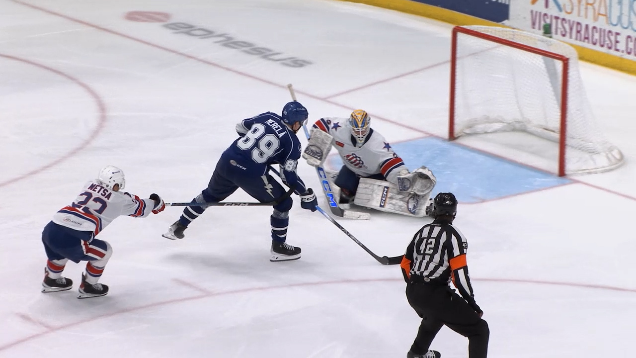 Brandon Halverson stopped 33-of-34 shots in net for the Crunch. Amerks goaltender Devon Levi turned aside 60-of-62. Syracuse was held scoreless on six power play opportunities, while the penalty kill went a perfect 2-for-2.