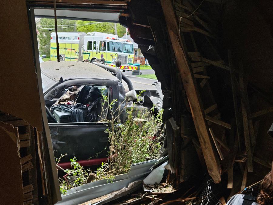 Around 4 p.m., the Cortlandville Fire Department was called to a home at Blodgett Mills Road West. When they arrived, they saw a pickup truck had crashed into a home, causing significant damage to the truck and the home.