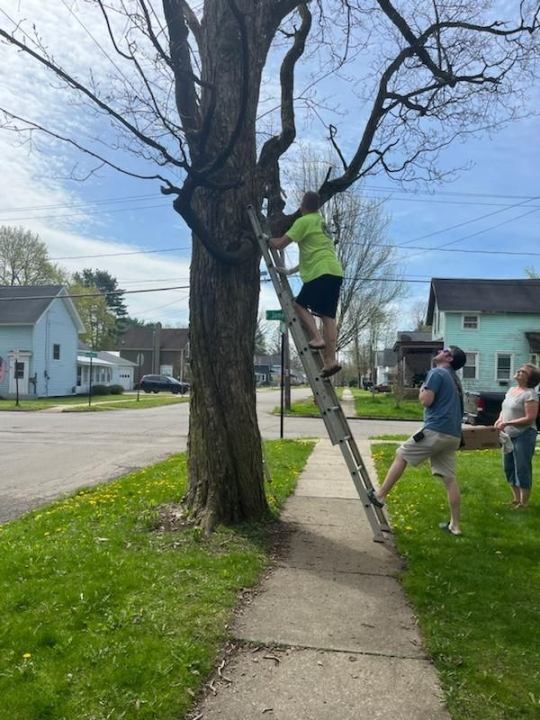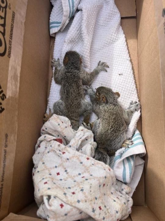 A few baby squirrels had lost their mother and were stuck in a tree.