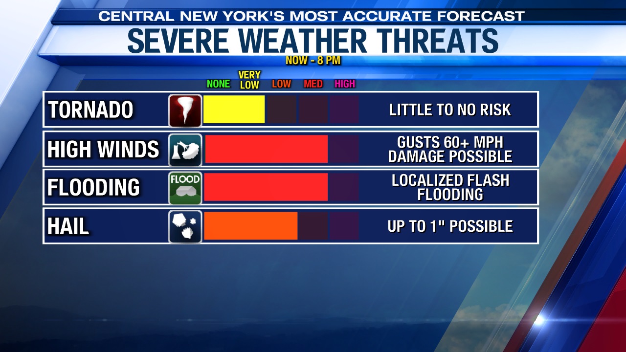 Stay safe and weather-aware as these storms move through Central New York. Have the Storm Team app downloaded to your phone so you can be notified of lightning strikes nearby and be instantly alerted of any watches and warnings the National Weather Service may issue.