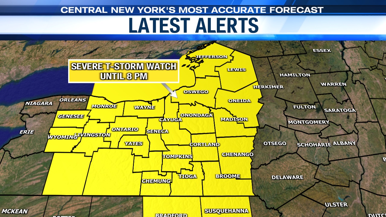 A Severe Thunderstorm Watch has been issued for all of CNY until 8 p.m. this evening.