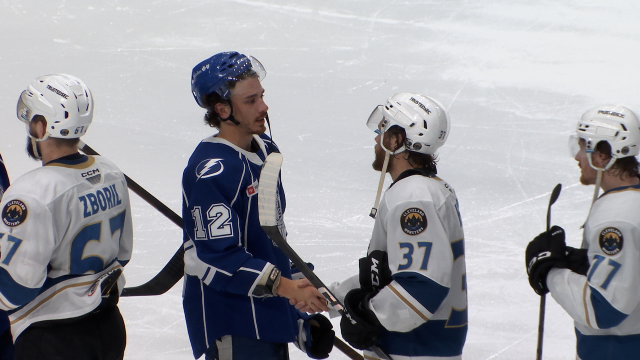 The Monsters knotted the score, 3-3, just 1:02 into the final frame. Justin Pearson centered the puck from beyond the goal line for Alex Whelan to redirect in. Josh Dunne put the Monsters back on top halfway through the frame off a backhander while on a short breakaway. Barre-Boulet knotted the score late in the game with his second of the night when he tipped in Declan Carlile’s shot, but a minute later, Luca Del Bel Belluz regained Cleveland’s lead off a rebound opportunity. Roman Ahcan locked in a Monsters win when he potted an empty-netter in the final minutes.