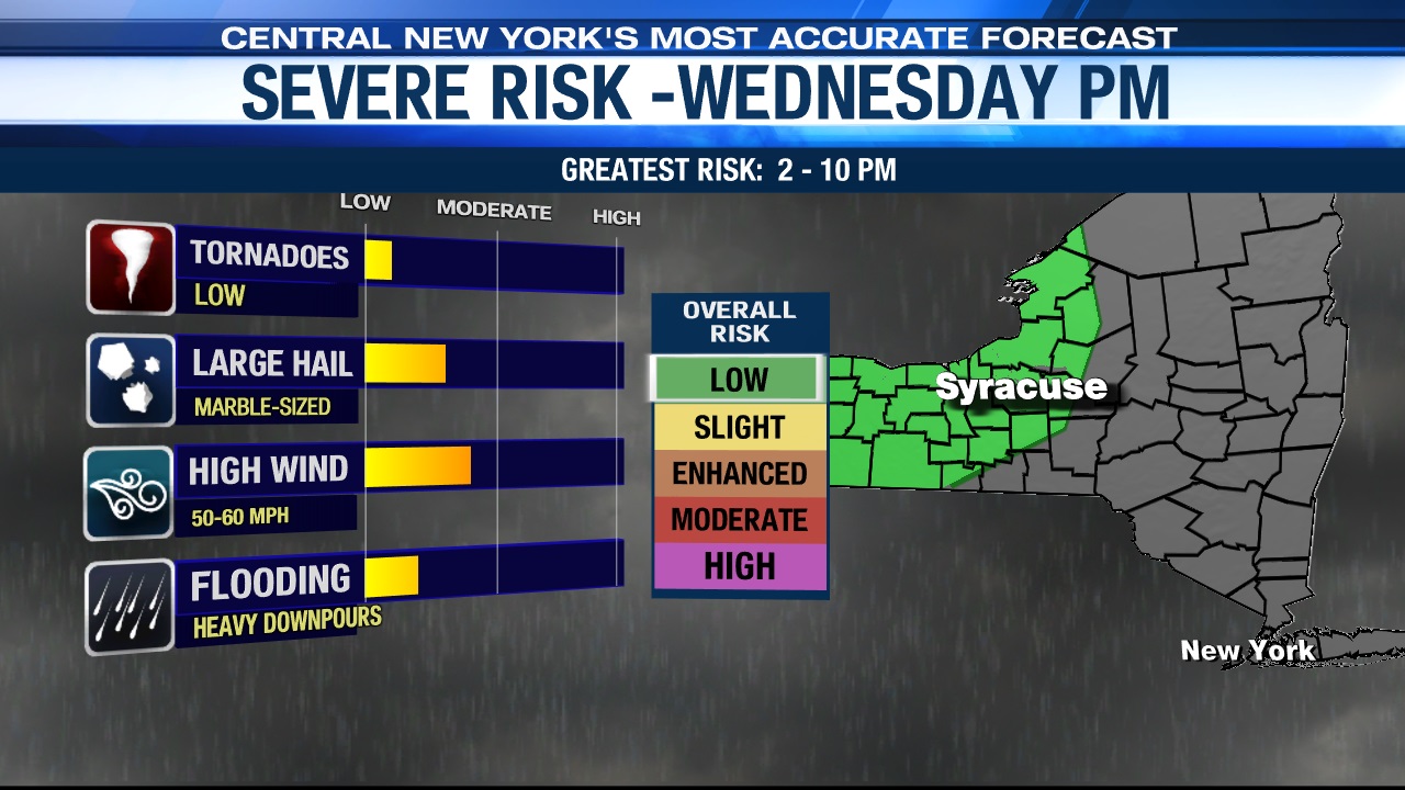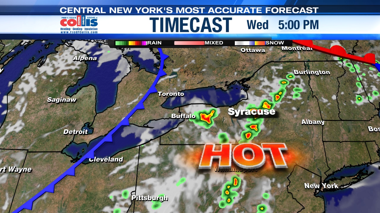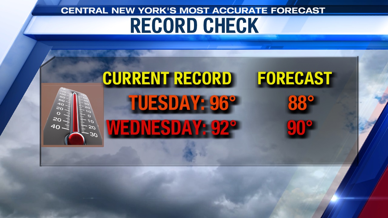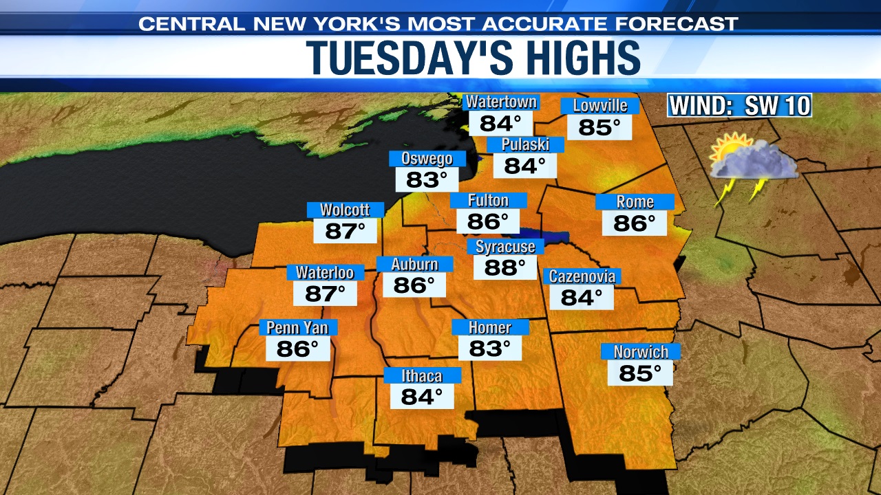 A developing southwesterly wind (typically a warm wind for Syracuse) helps push temperatures into the upper 80s to near 90 Tuesday!