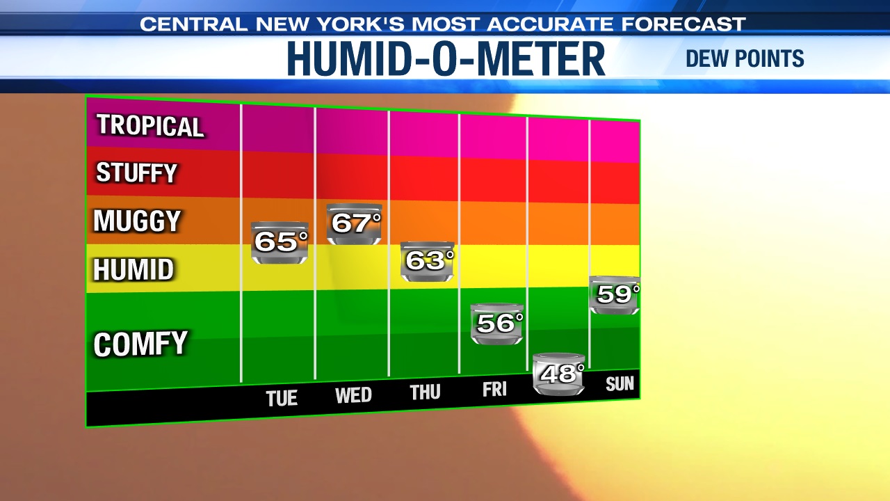 In addition to the heat, the humidity will continue to inch up through Wednesday adding to an early taste of mid-summer weather for Central New York. Check out the rising dew points through midweek below too…