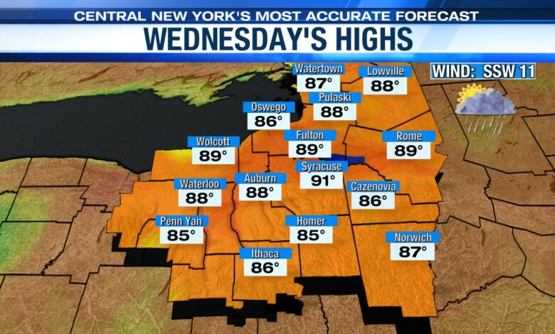 SYRACUSE, NY (WSYR-TV) – Summertime warmth sticking around through midweek, but will we hit 90° or higher for the first time this year? Find out below…