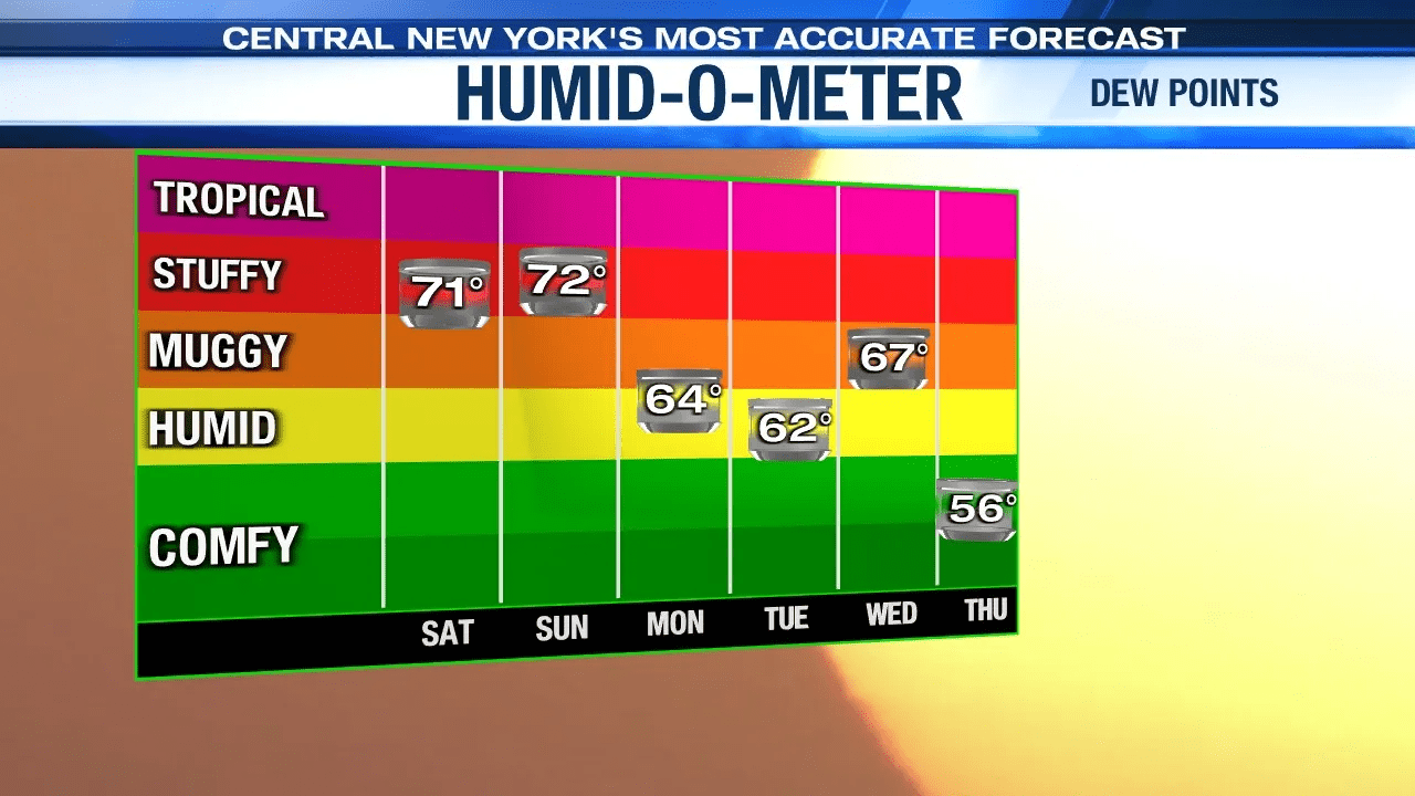 SYRACUSE, NY (WSYR-TV) – We’ve one of the hottest and longest stretches of weather for this early in June. While the hottest temperatures of this current heat wave are over for central New York, but here are still some very warm and very muggy days to navigate into the weekend.