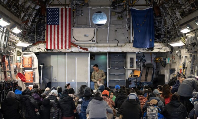 Anchorage leaders said Friday they expect as many as 1,600 evacuees to arrive. So far about 575 have been airlifted to the city by the Alaska National Guard, and have been staying at a sports arena or a convention center. Additional flights were expected Friday and Saturday.