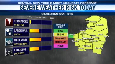 SYRACUSE, NY (WSYR-TV) – Showers and storms are expected this afternoon through early this evening across Central New York. Some…