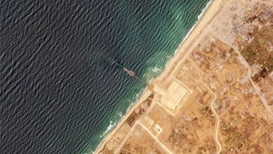 US military says first aid shipment has been driven across a newly built US pier into the Gaza Strip |…