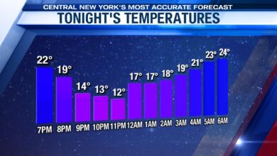 SYRACUSE, NY (WSYR-TV) – Well Tuesday wasn’t warm by any means but certainly not as cold as Valentine’s Day was…
