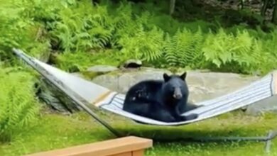 Watch: Bear relaxes on a hammock in a Vermont yard