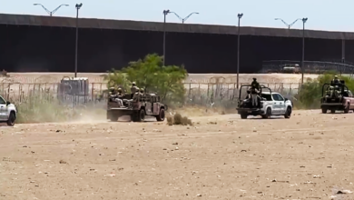 Soldiers now patrolling Mexican riverbank while Texas Guard continues turning back those who approach razor wire barrier JUAREZ, Mexico (Border…